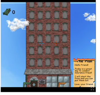 Work together with your friendly neighborhood arsonist to collect your paycheck, and his insurance money. Just don't let the fire get out of hand...